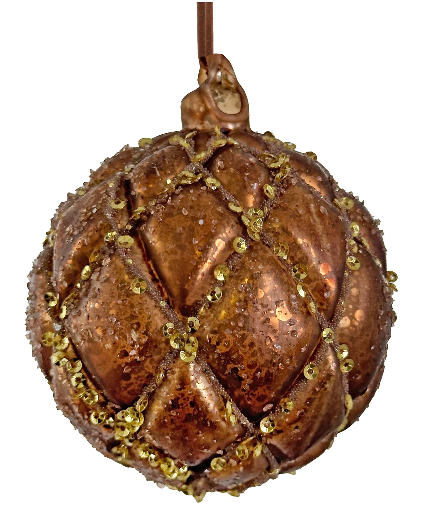 Shishi Glass velvet ball antique brown with gold sequin - 67164